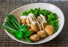 3/190 г • картофель, опята маринов., лук маринов., фасоль консерв., заправка, салат свежий