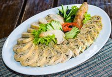310/3 г • филе куриное, яйцо отварное, сухарики белые, зелень