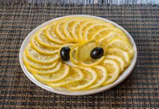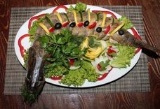 324/1000 г • судак фаршированный, томат свежий, огурец свежий, зелень, лимон, маслины