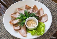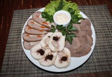 17/120/120/80 г • буженина из свинины, язык говяжий отварной, руляда куриная, хрен, зелень